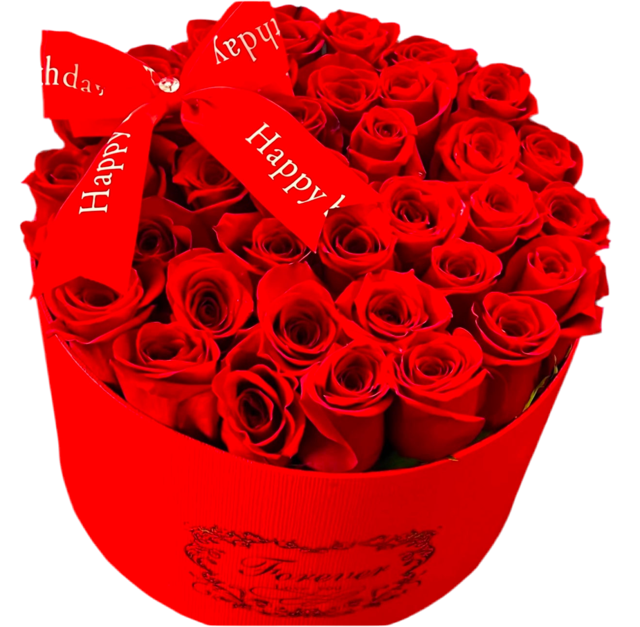 25- 30 premium roses arranged in a box.